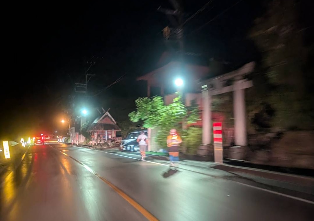 夜中のマラソン大会らしいですが、誘導員もいない、、、大変危険です。