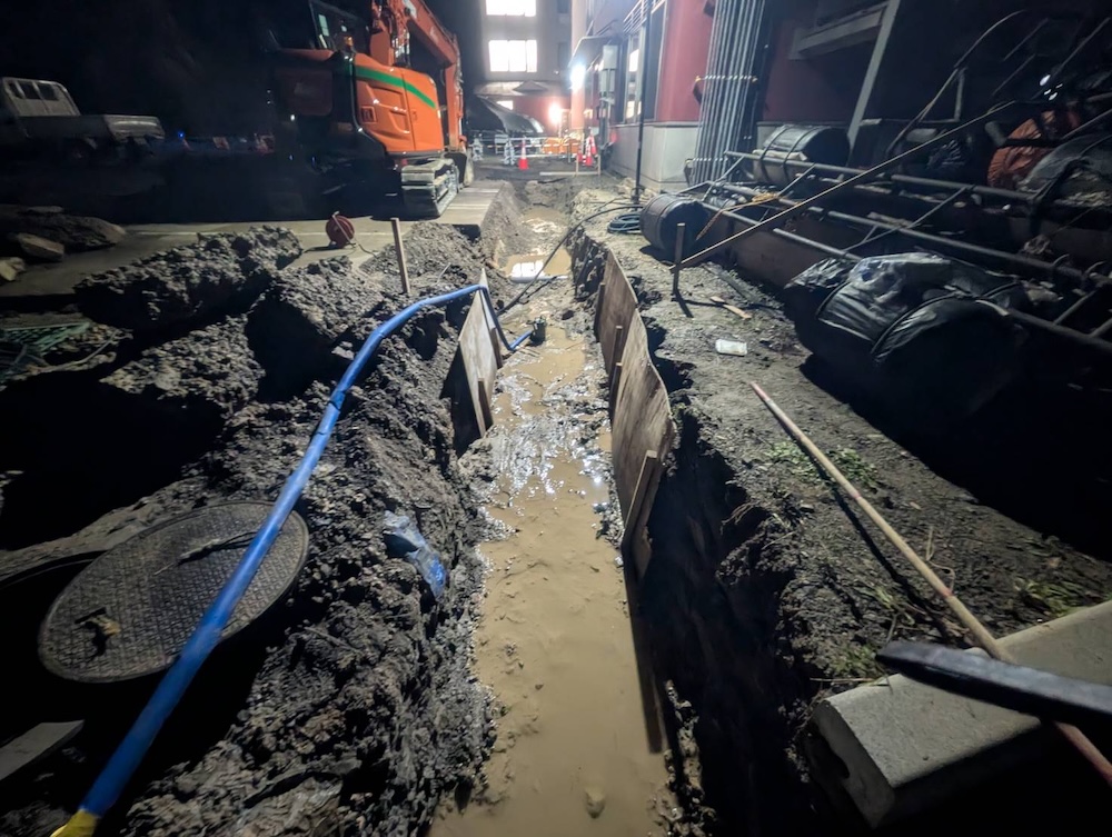 玄関前、側溝新設工事。