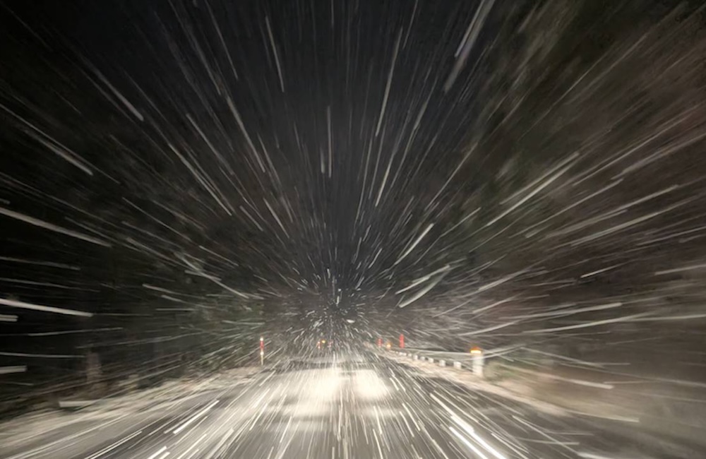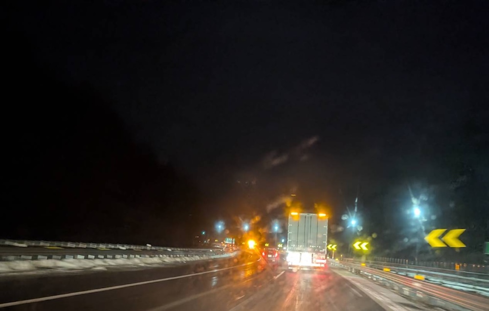 珠洲道路 能登から空港まで、雪あり。