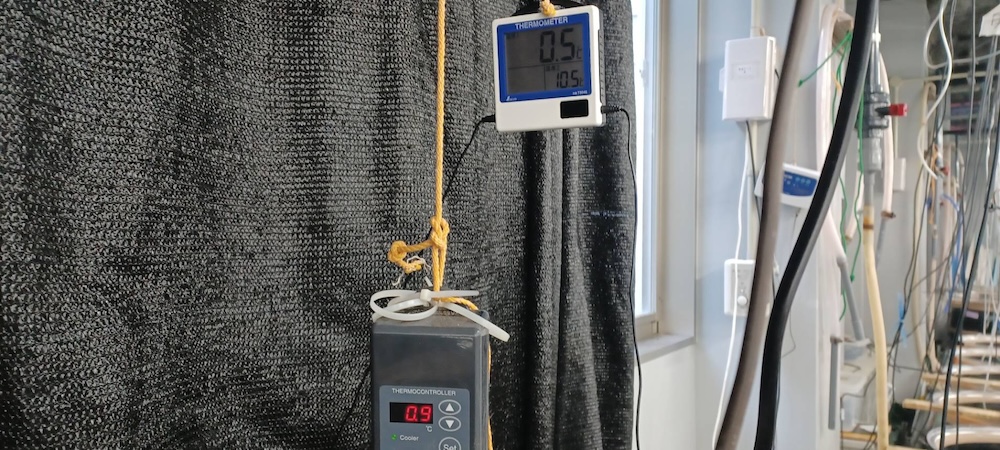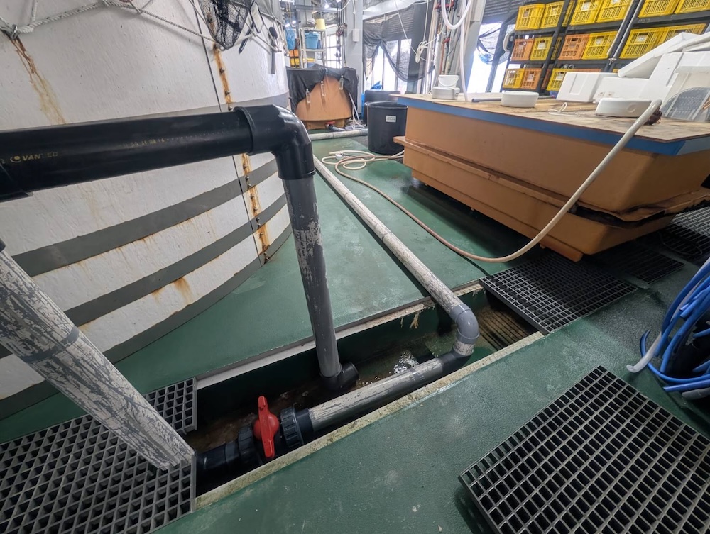 サクラマス水槽の水を使いたく、水槽の水を減水。
