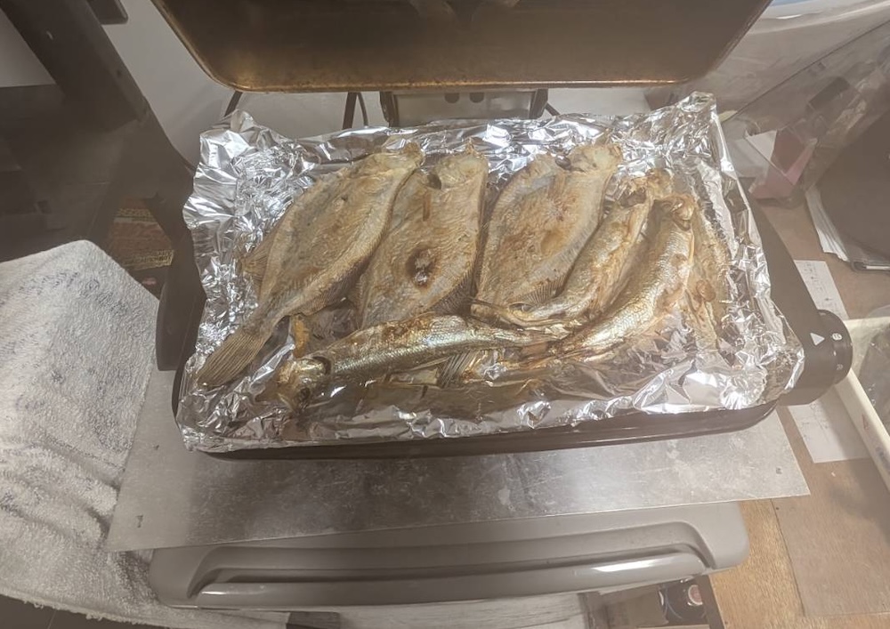 厚岸林さんから頂いたトウガレイ、キュウリ、コマイの干物をいただきました。