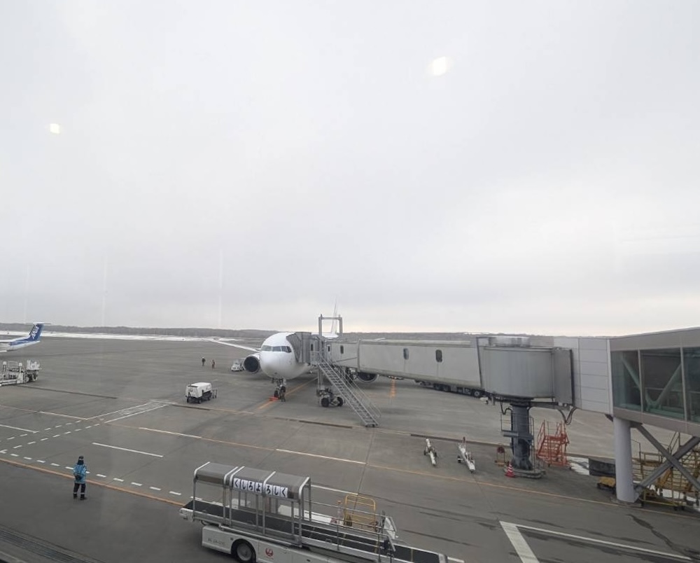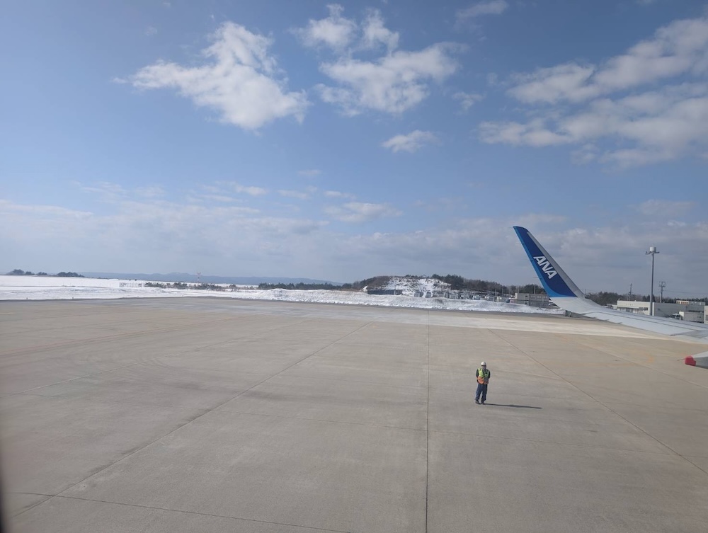 空港も残雪