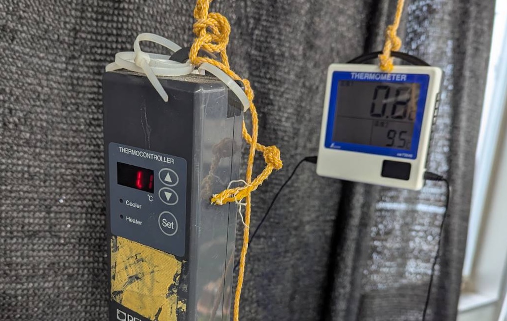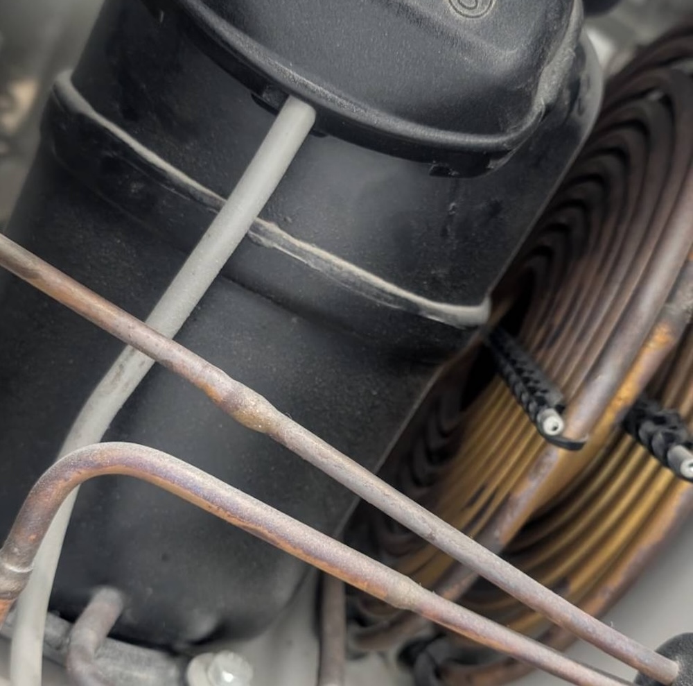 エアコン工事、、、最後の掃除が甘い、、、水槽にゴミが残った。