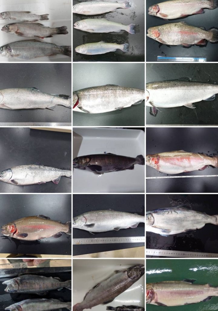 これまで当センターで生産できたサケマス類各種(ニジマス、サクラマス、ヒメマスなど)