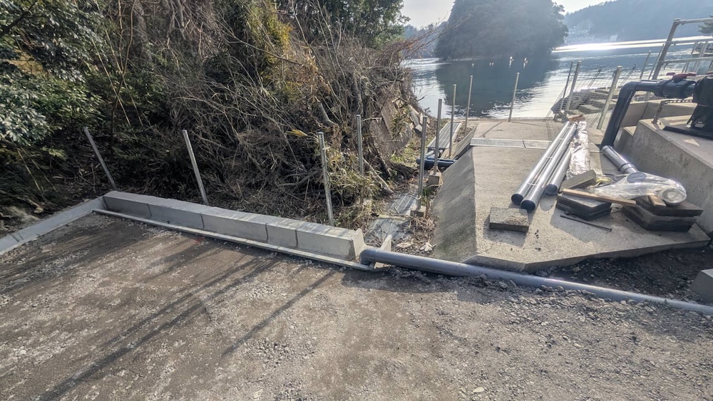 一昨日永見技官&上畠技術補佐員、、昨日永見技官と西中建設さんがすでに海面にセット(写真左)してくれました。